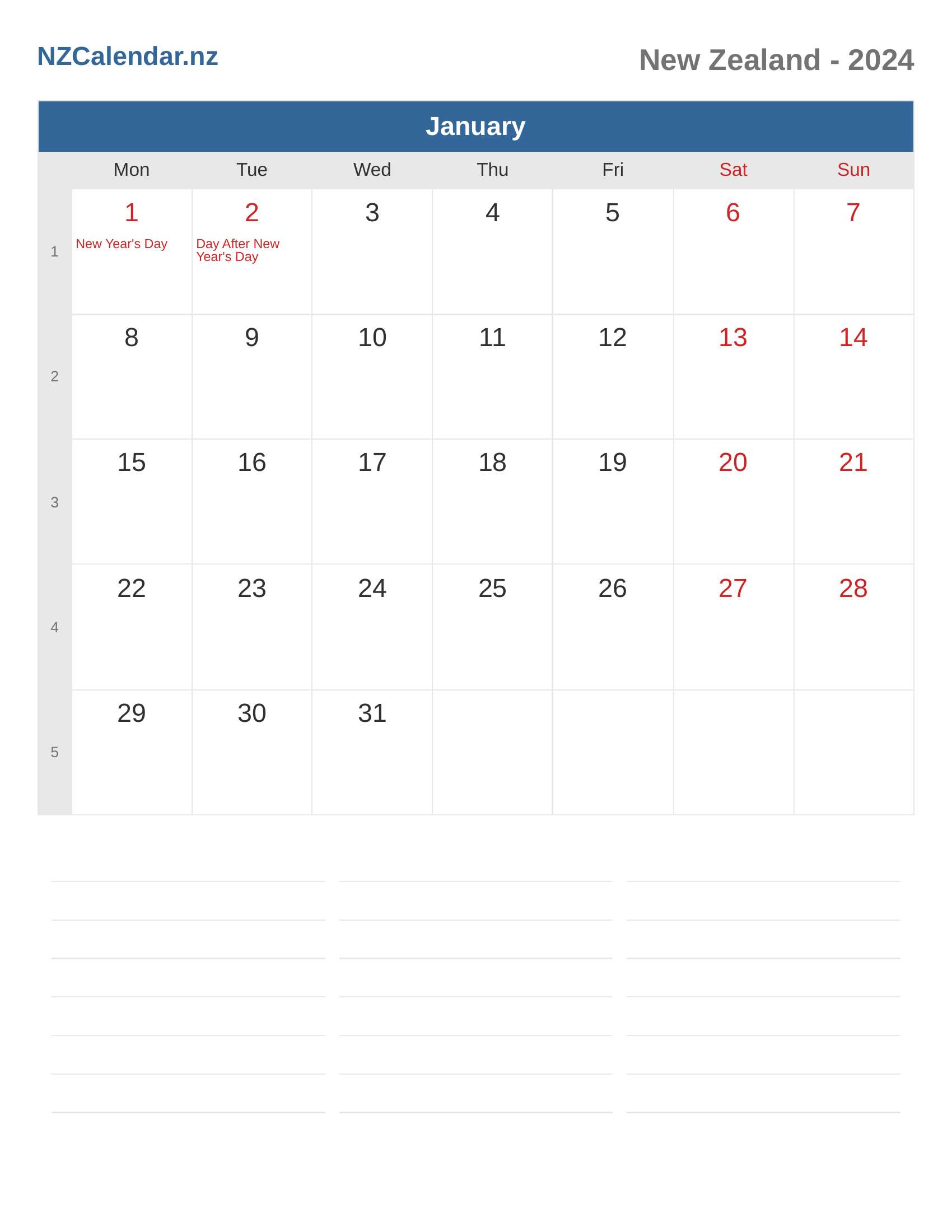 New Zealand Calendar 2024 - January
