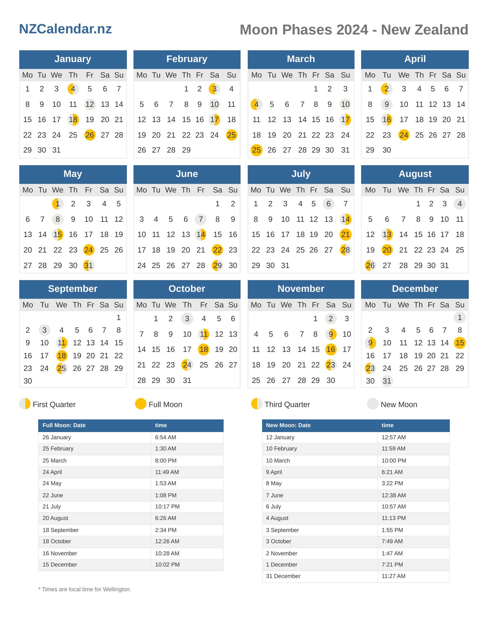 Moon Phases 2024 - New Zealand