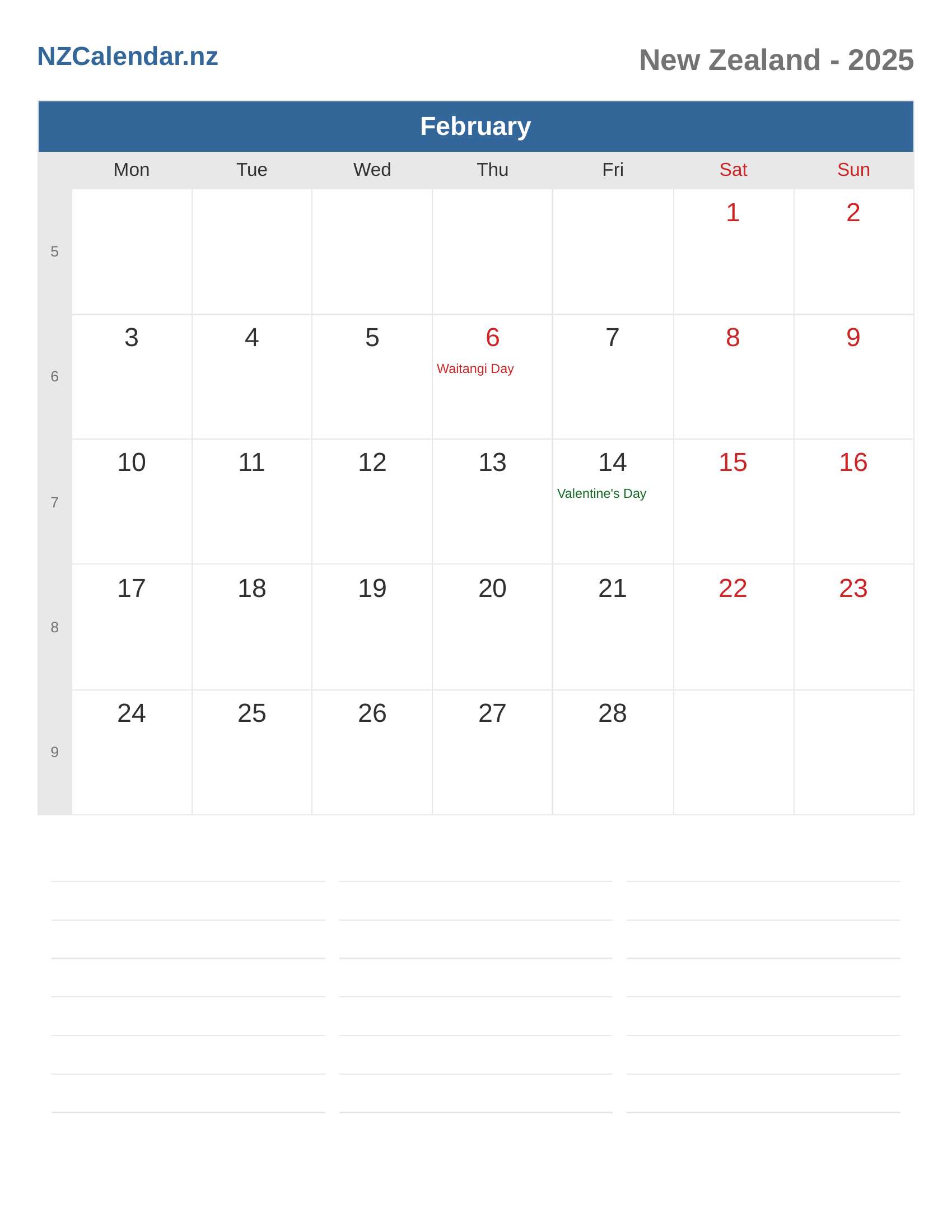 New Zealand Calendar 2025 - February