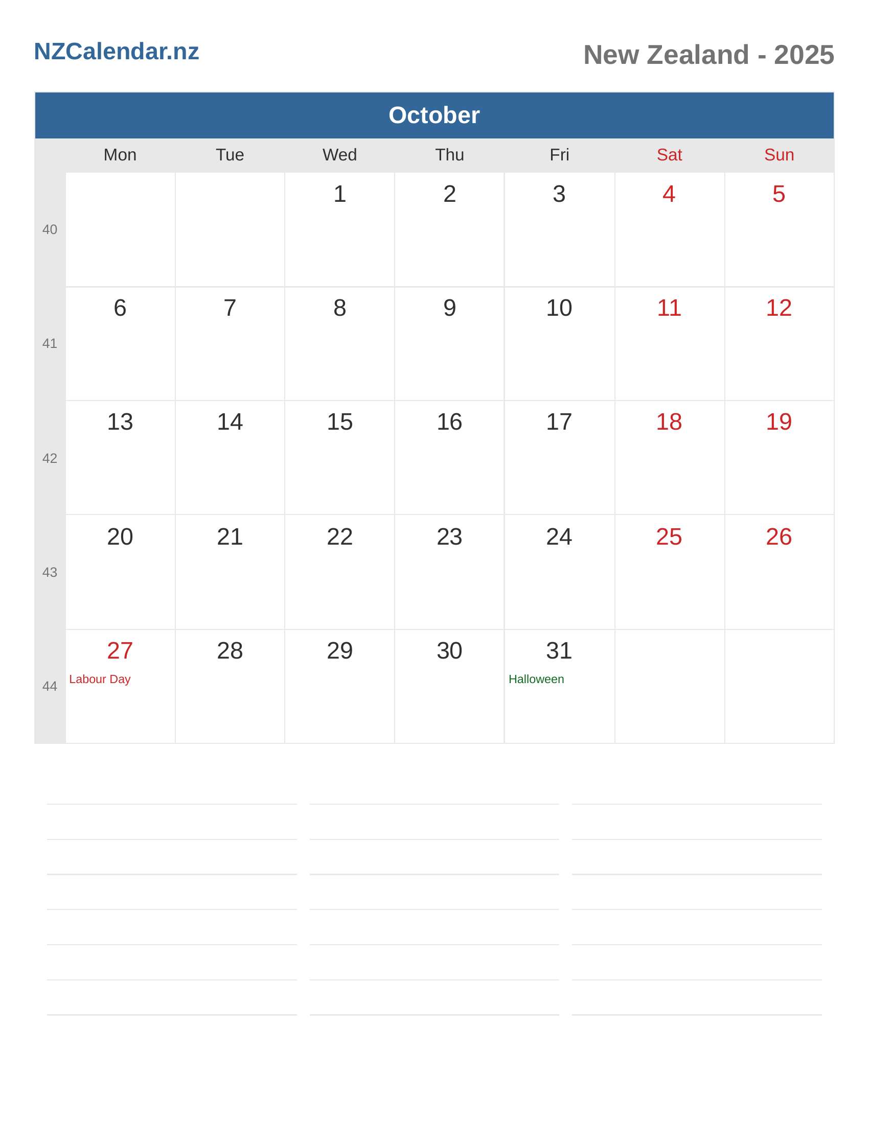New Zealand Calendar 2025 - October