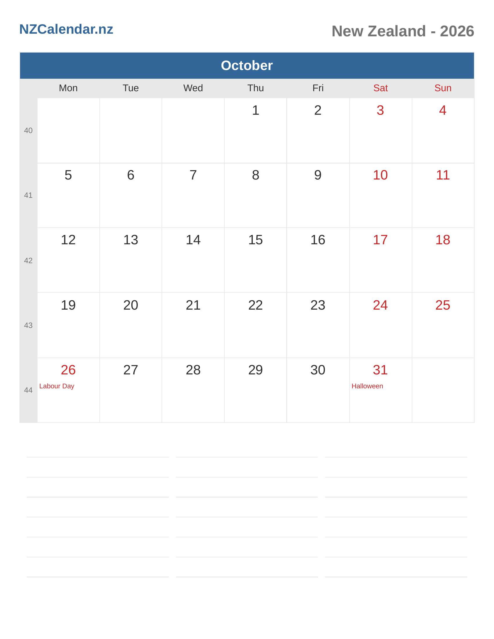 New Zealand Calendar 2026 - October