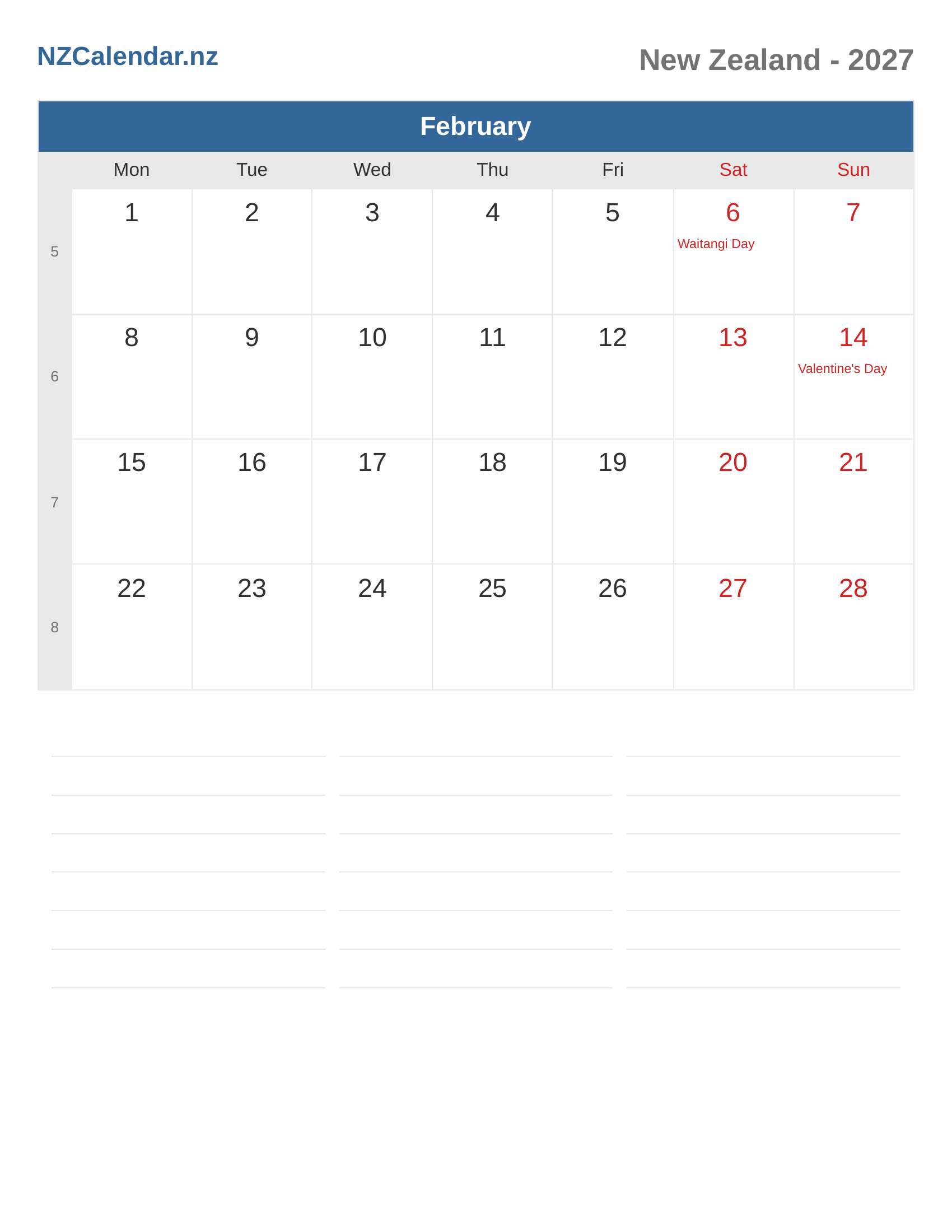 Calendar February 2027 - New Zealand