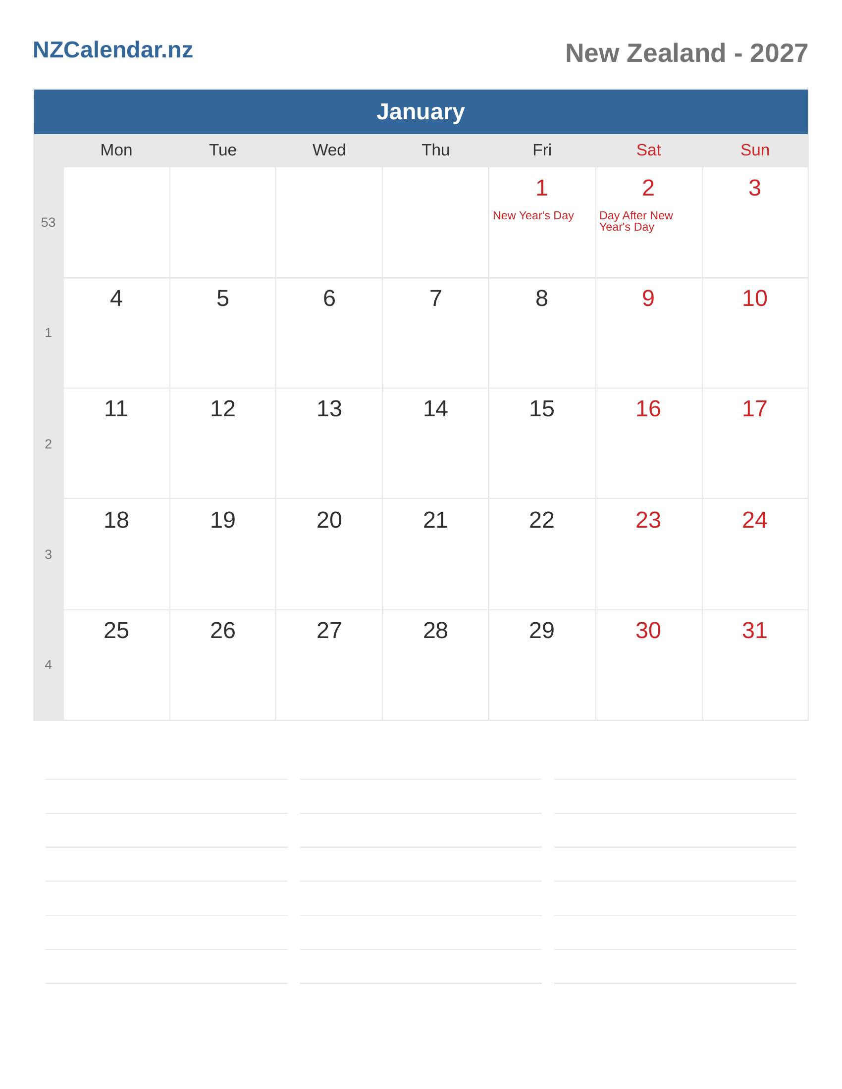 Calendar January 2027 - New Zealand