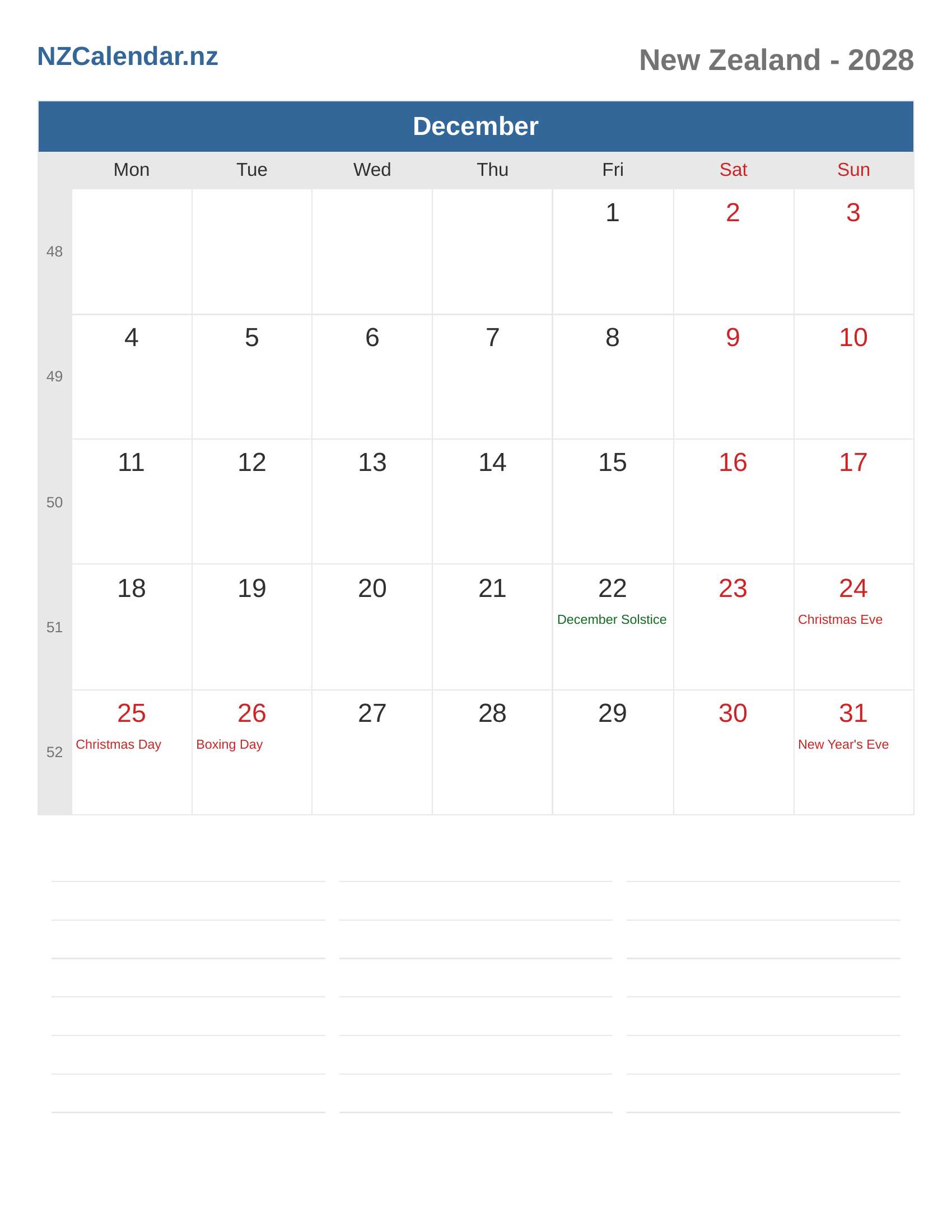 Calendar December 2028 - New Zealand